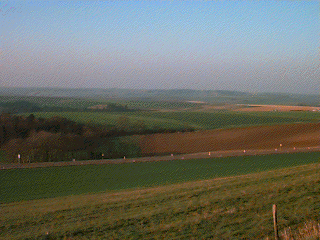 モニュメントを背にして、眺めるなだらかな丘陵。フランスの始祖クローヴィス戴冠の街、シャンパーニュのランスの南、ブルゴーニュの美食の都ディジョンの北。