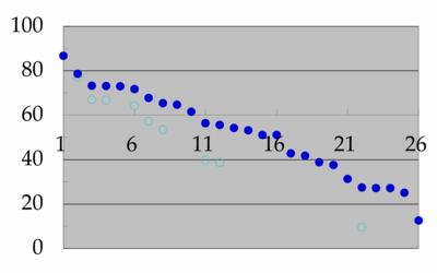 履修登録25名で期末試験受験者11名、単位取得7名(B3/C4)。単位取得率は実質で64%、名目で28%。持込不可のため成績は振るわなかった...と思いきや単位取得率は持込可の欧州と変わらず。付言すれば履修登録者数も受験者数も単位取得者数も同じ。なんだろう...更に言えば、採点結果提出用マークシートもちょうど25名で1枚だったりする。次回は、踏み台問題が必要だな...。